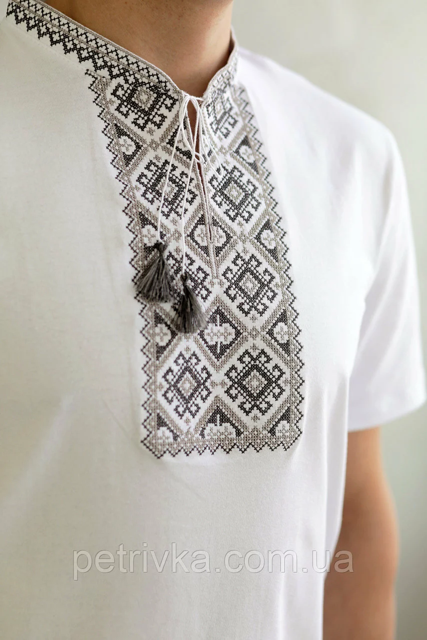 Чоловіча футболка з вишивкою, сірими нитками