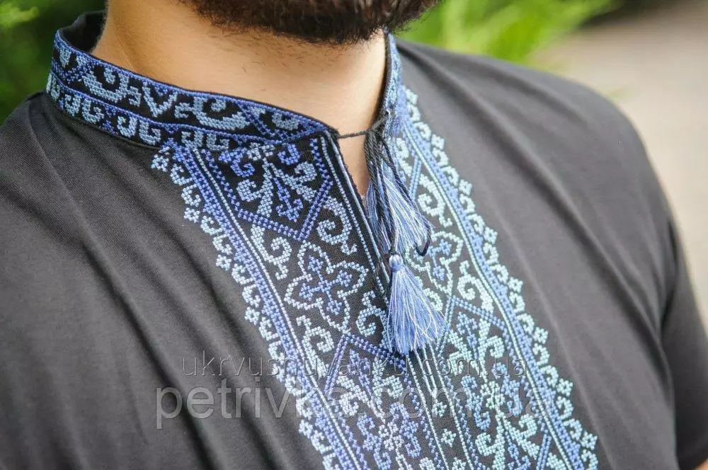 Дивовижна чоловіча футболка з вишитими синіми та голубими нитками узрорами ЧФ-01