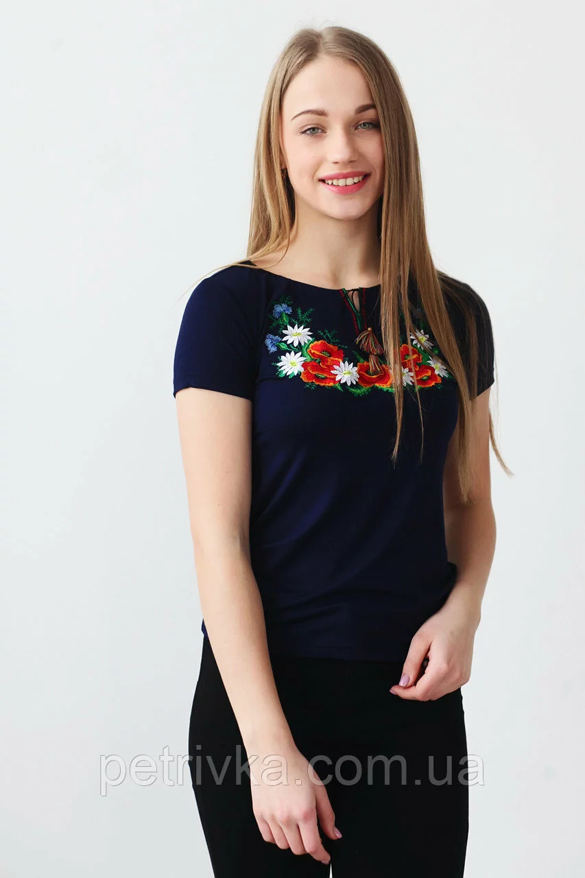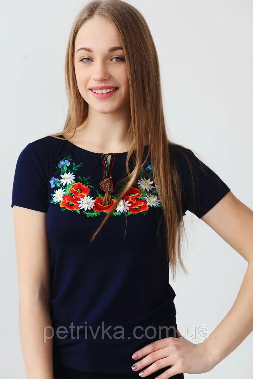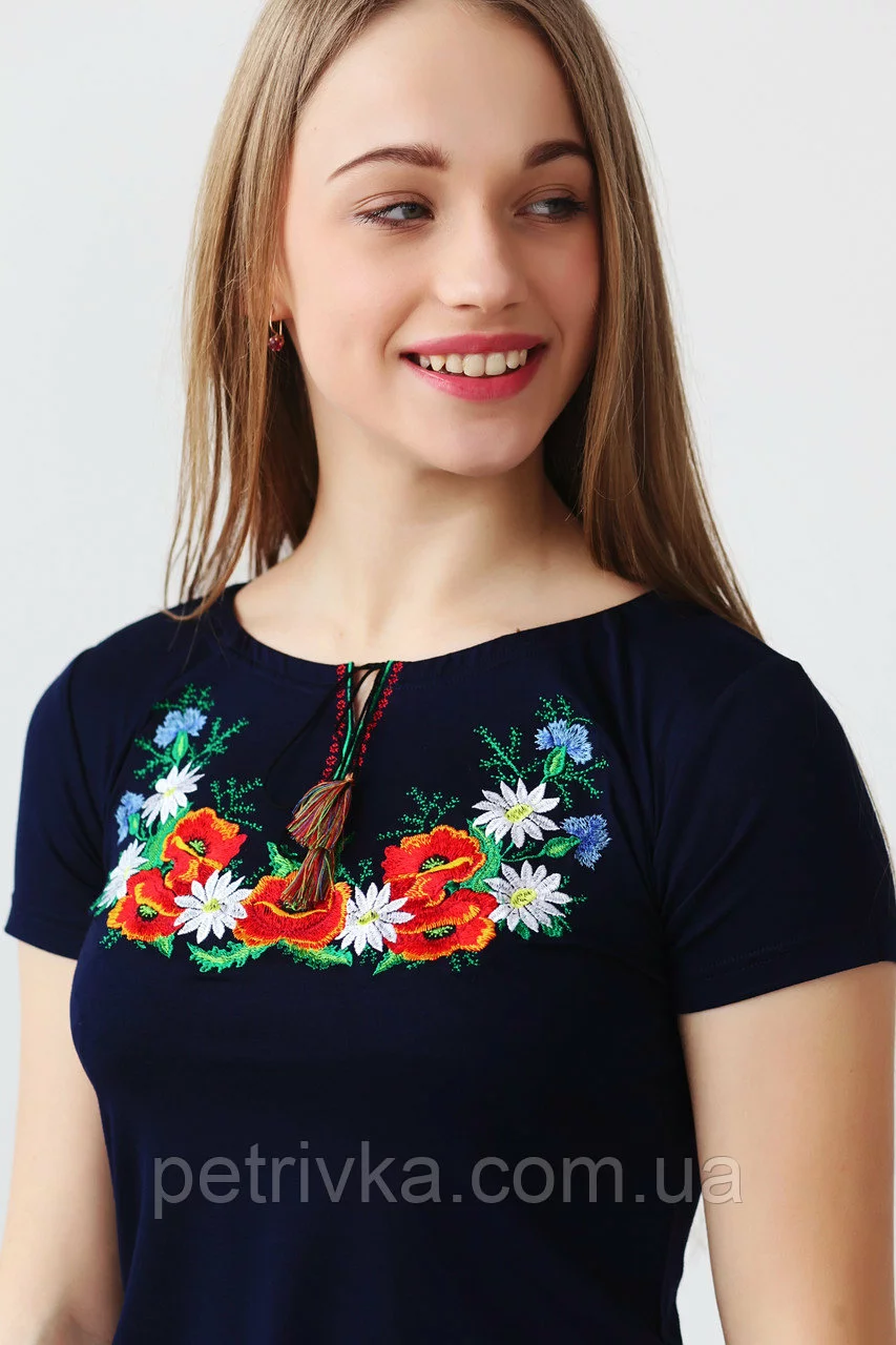 Чудова вишита жіноча футболка Маки А-23