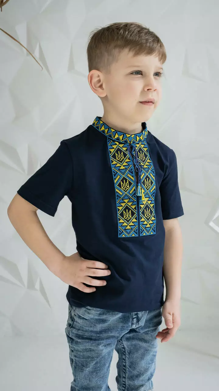 Дитяча вишита футболка з вишитими Тризубом