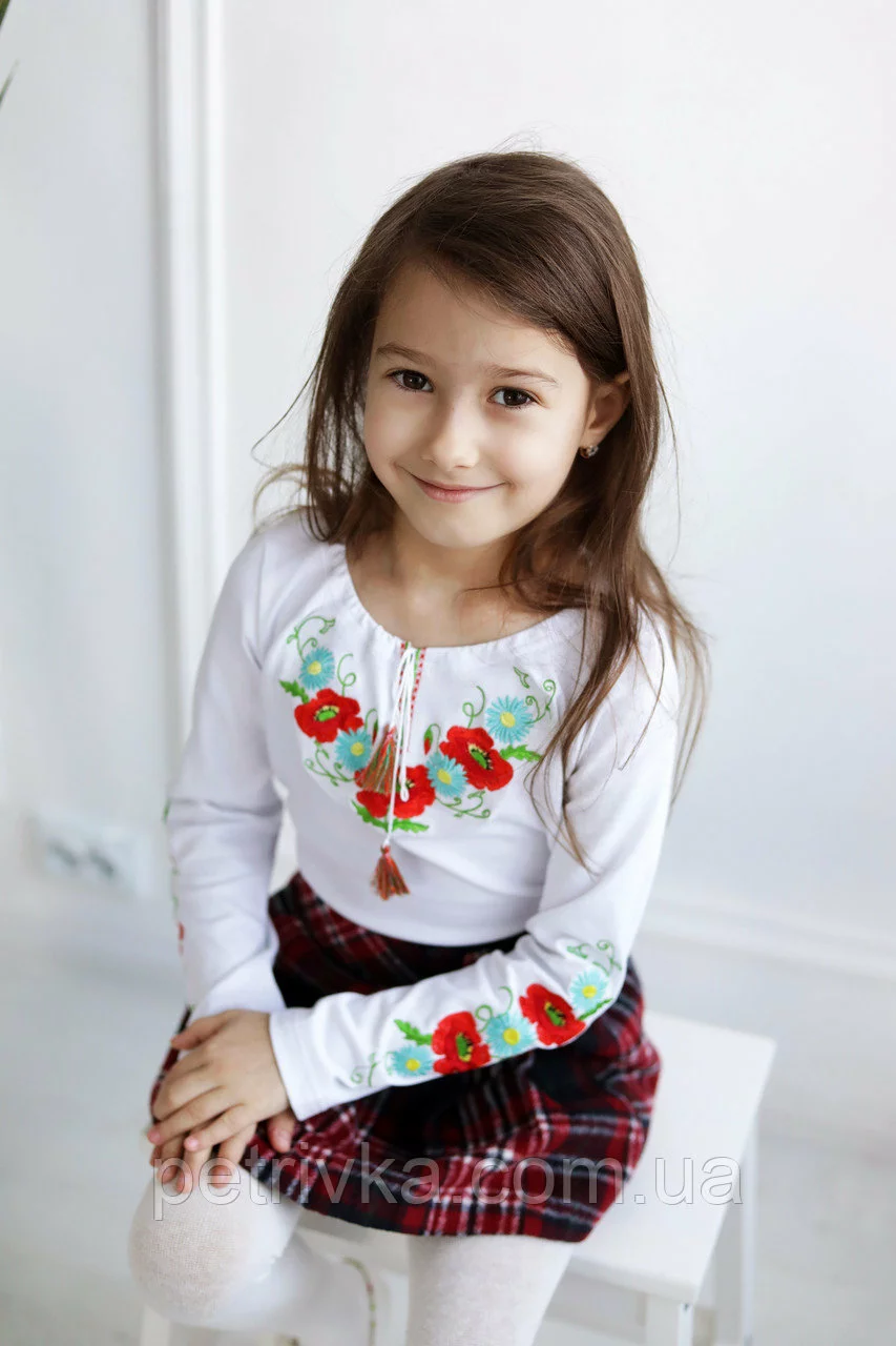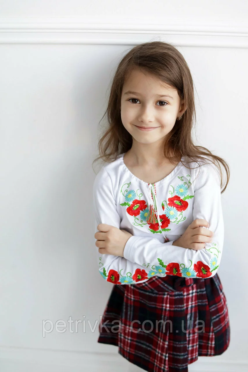 Комфортна і неймовірно красива футболка для дівчаток з багатою яскравою вишивкою на грудях і рукавах