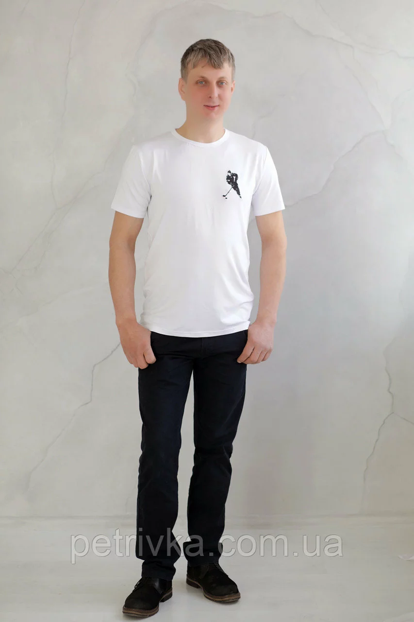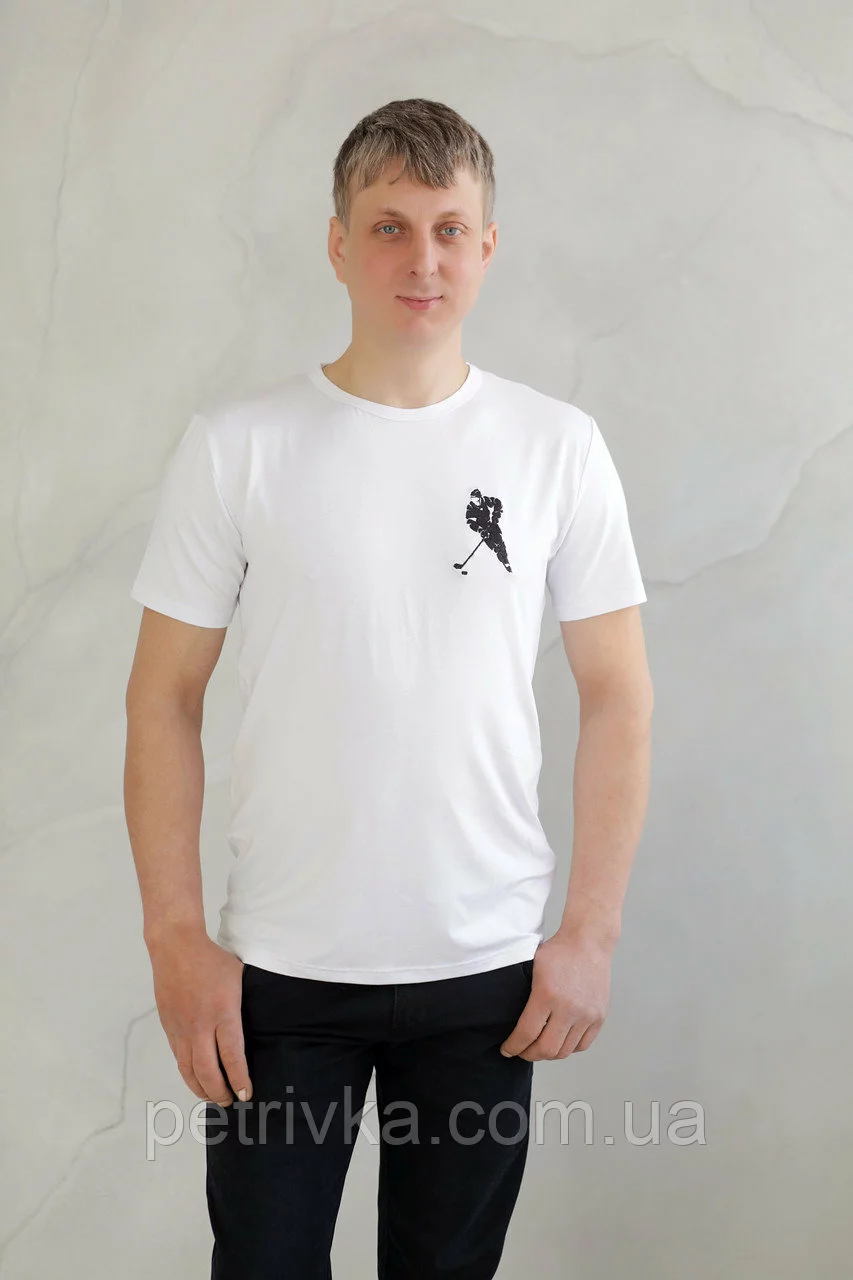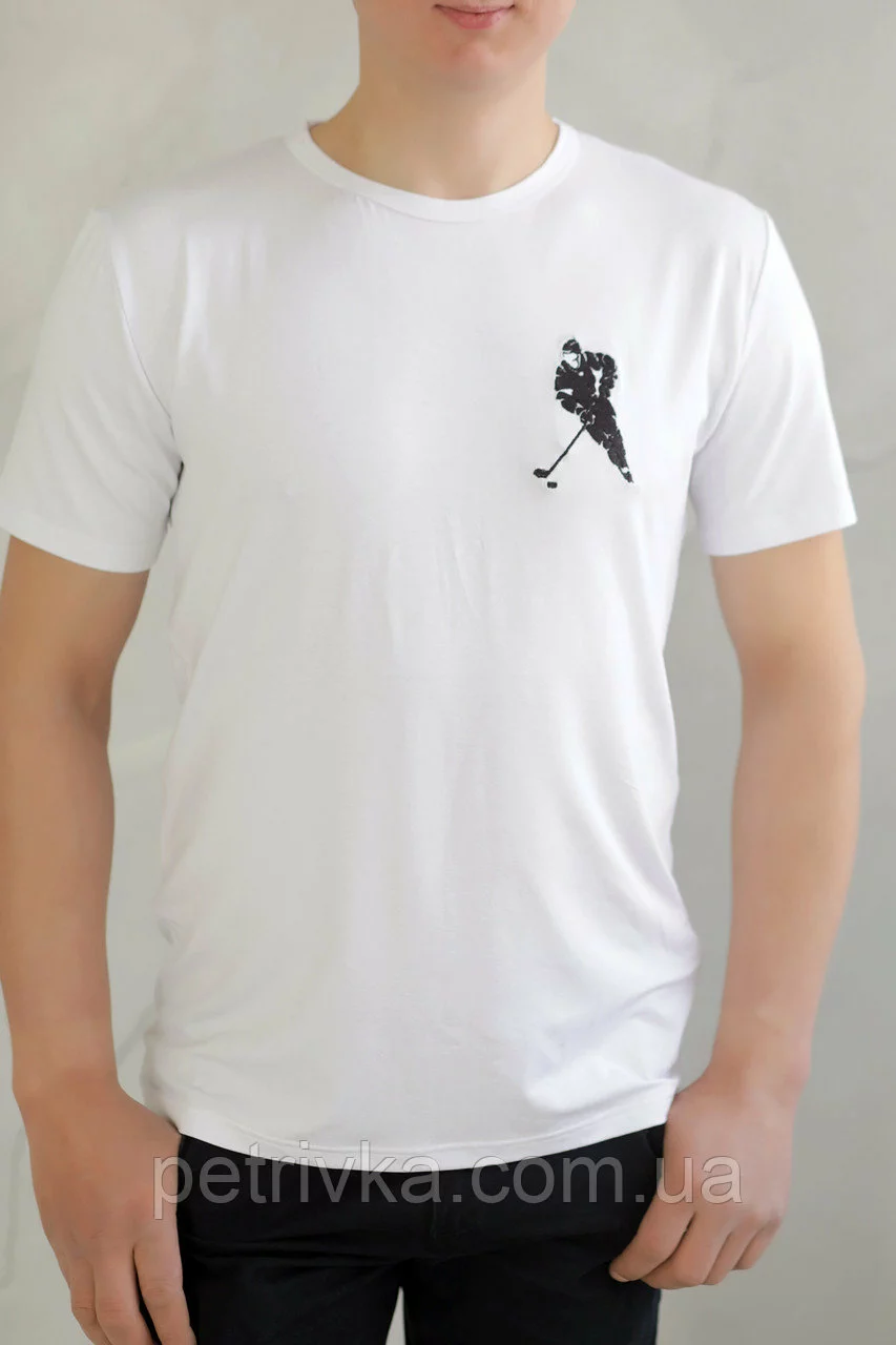 Чоловіча футболка біла з вишитим принтом Хокеїст, висока якість,