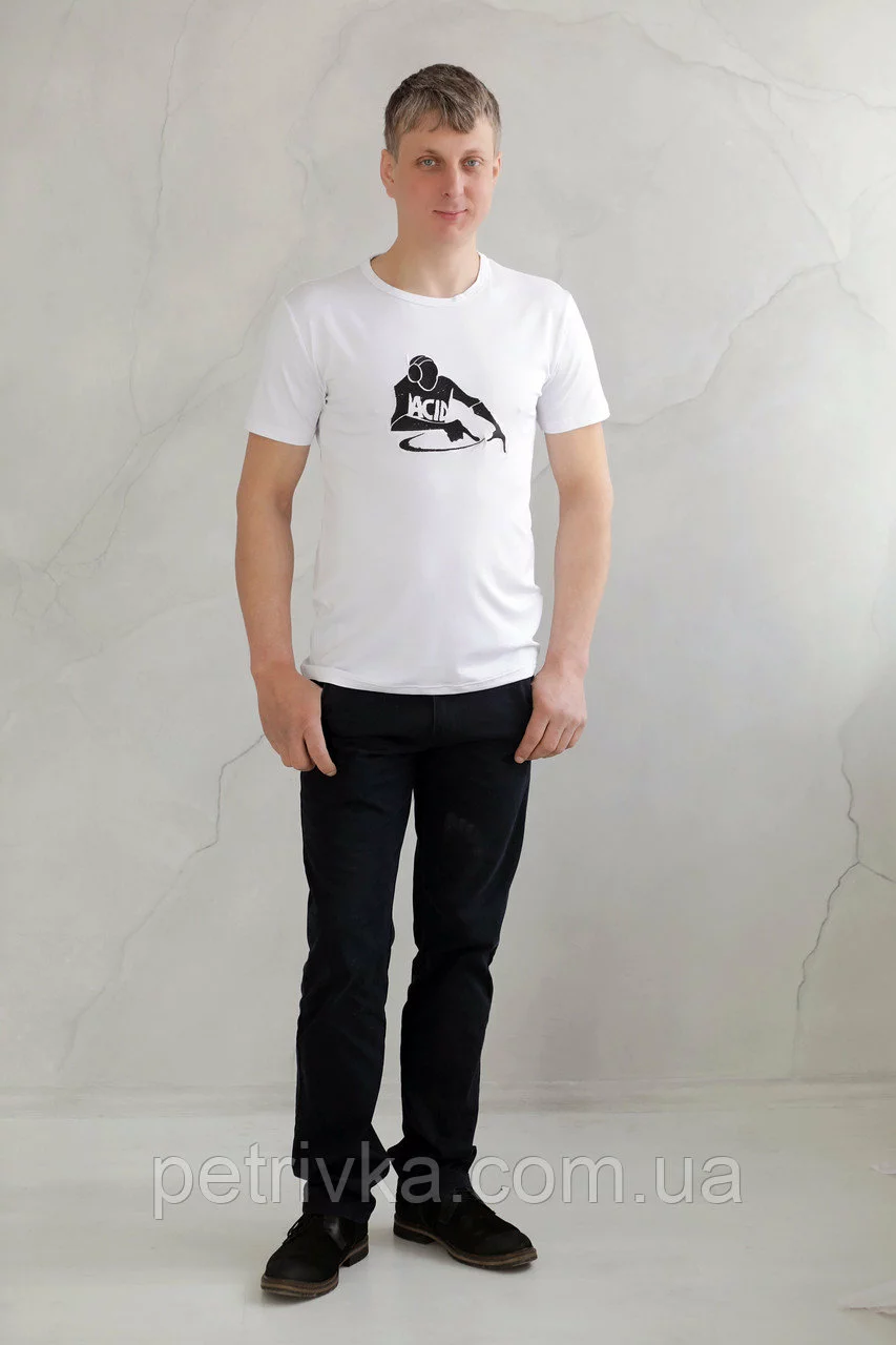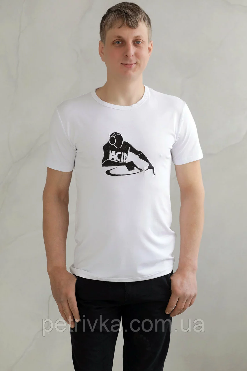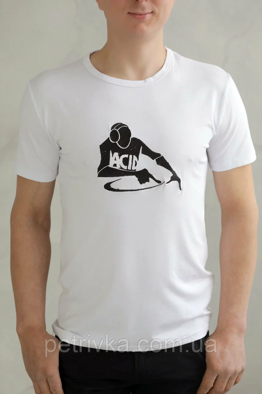 Чоловіча футболка біла з вишитим принтом Діджей, висока якість,