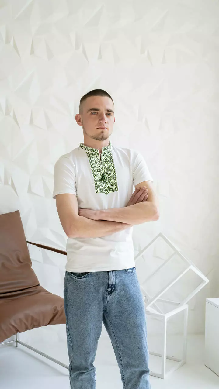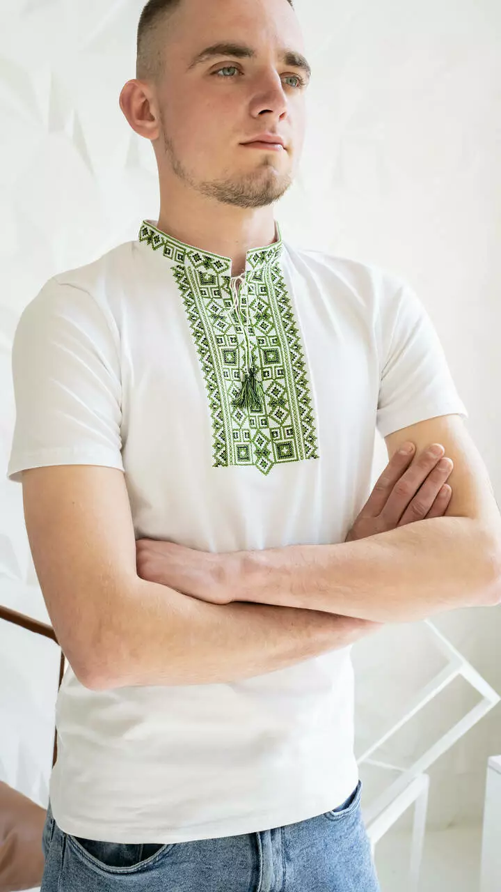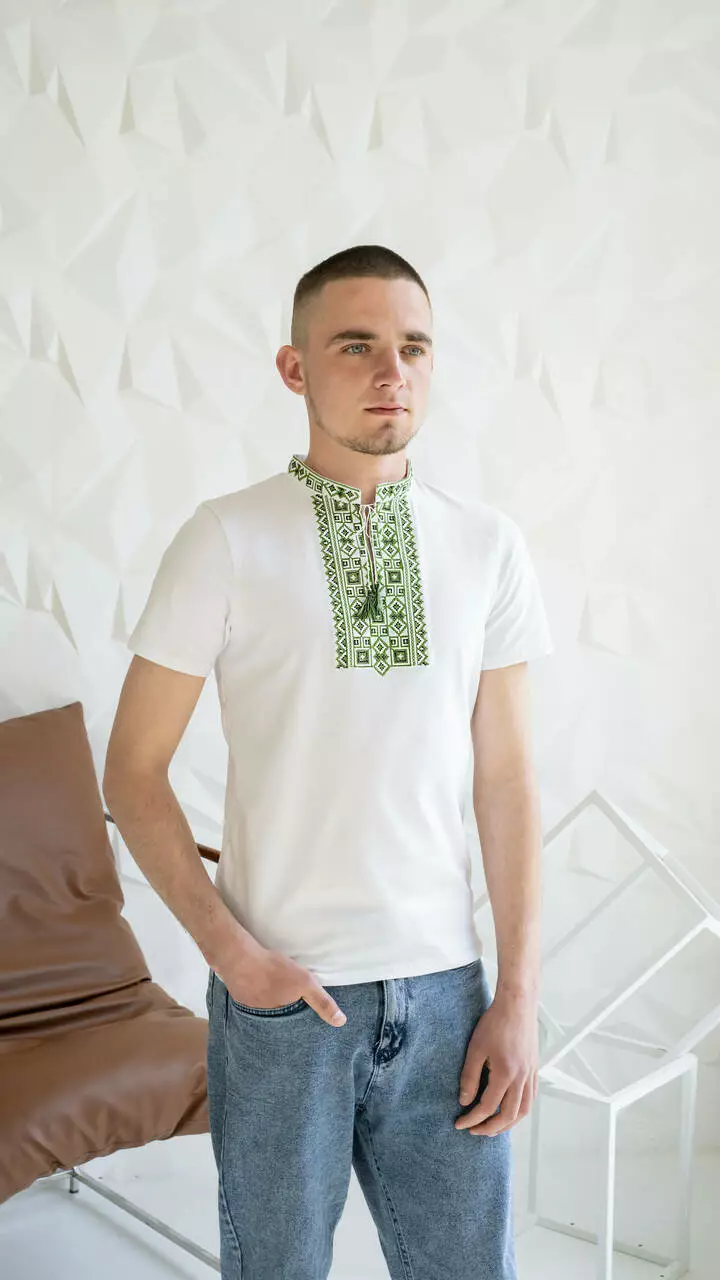 Молодіжна футболка з елементами вишивки, зеленими та чорними нитками ЧФ-20