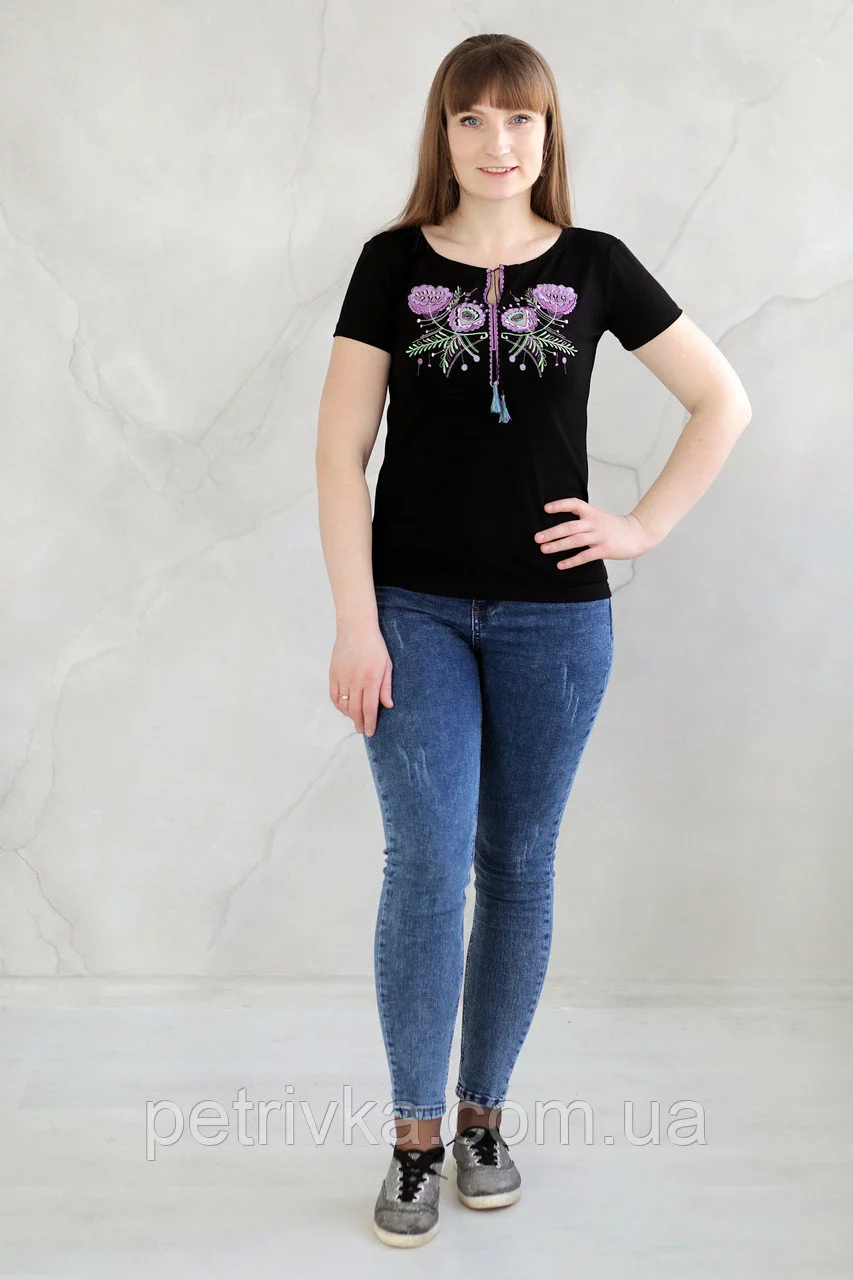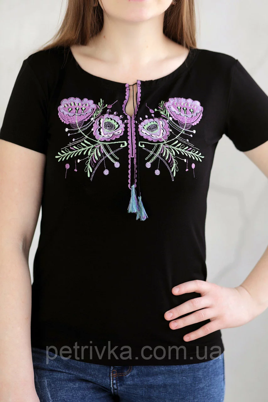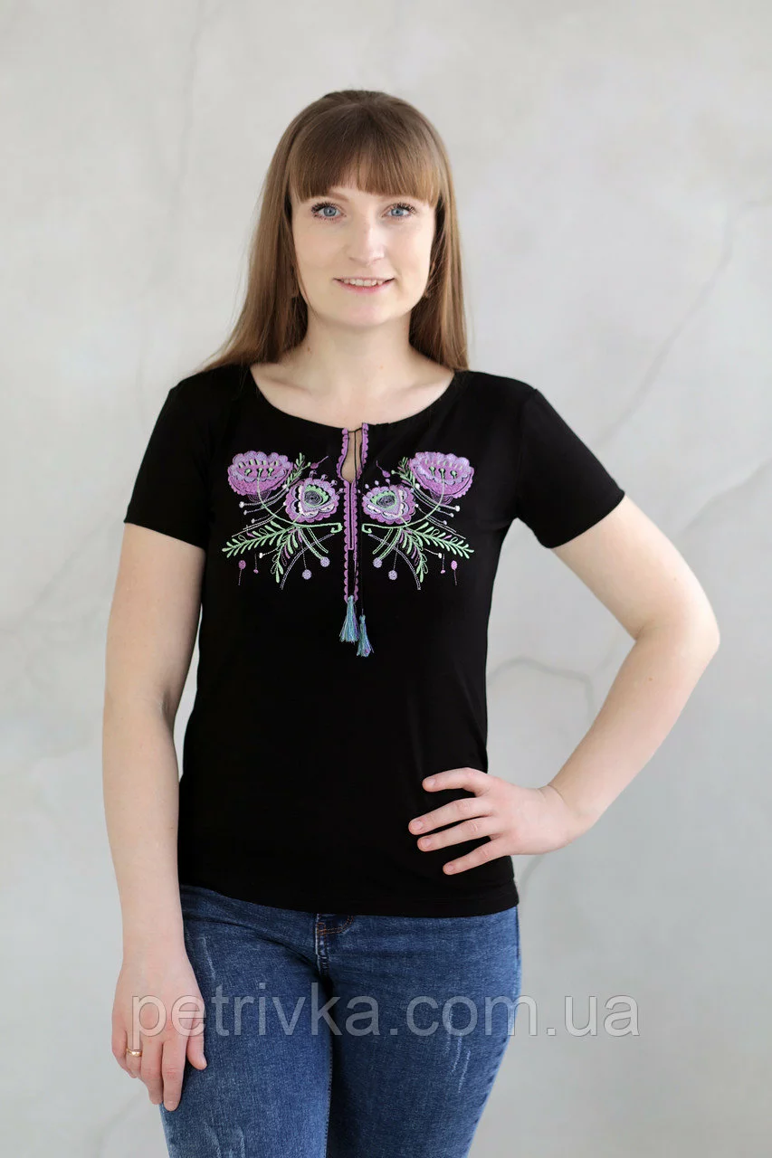 Молодіжна футболка жіноча з вишити гладдю квітами