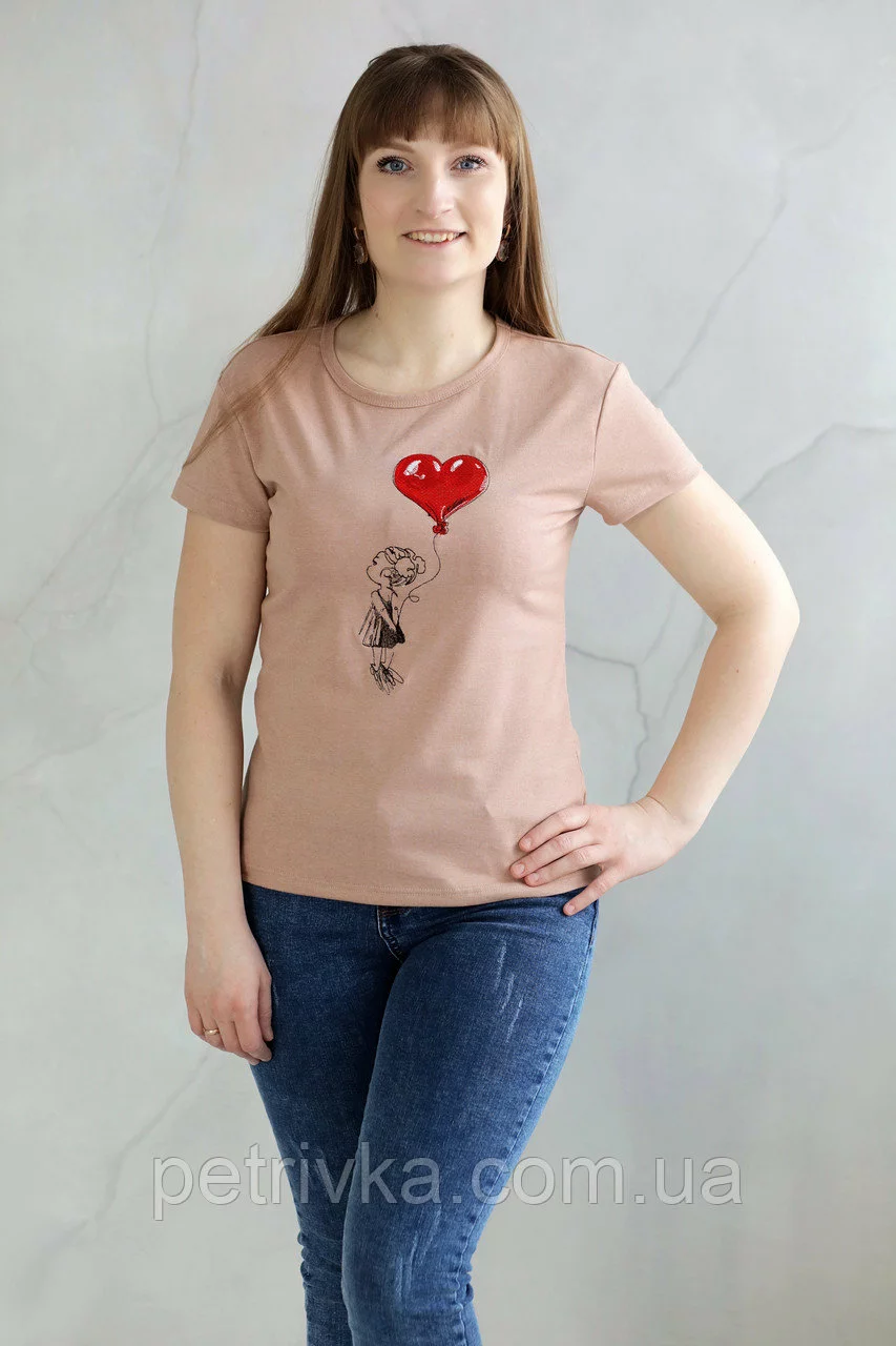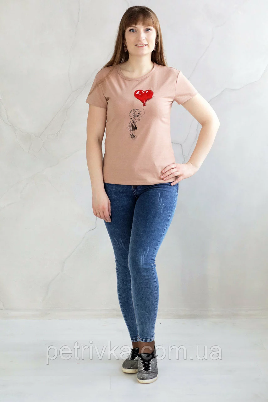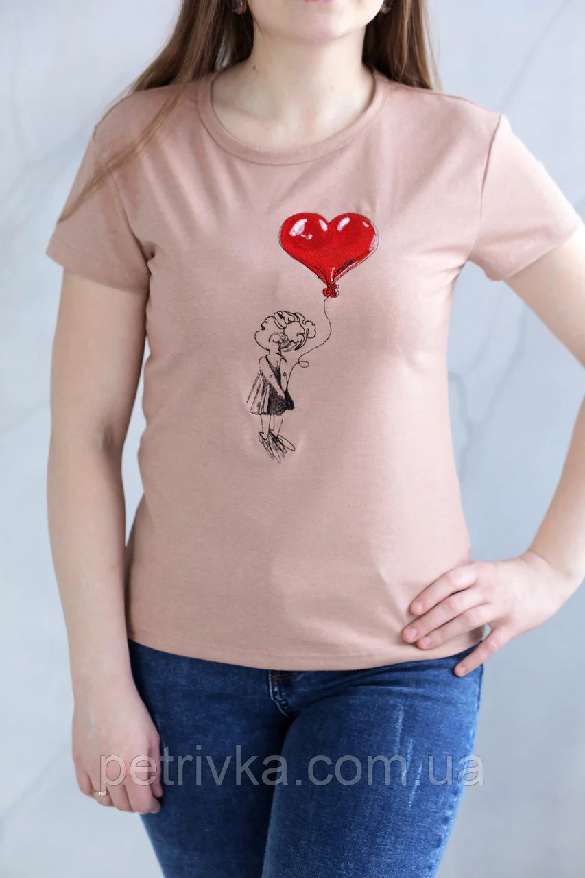 Неймовірна футболка жіноча з принтом Дівчинка з кулькою серце Casual