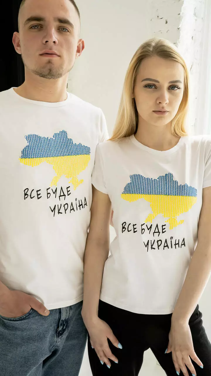 Парні Патріотичні футболки з вишитим надписом Все Буде Україна та Карта УКраїни
