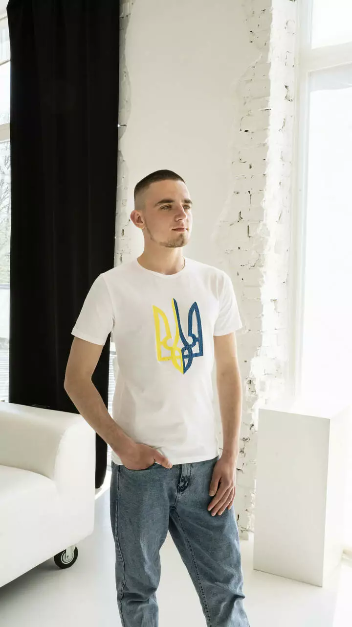 Патріотична чоловіча футболка на білій тканині "Тризуб" М-01