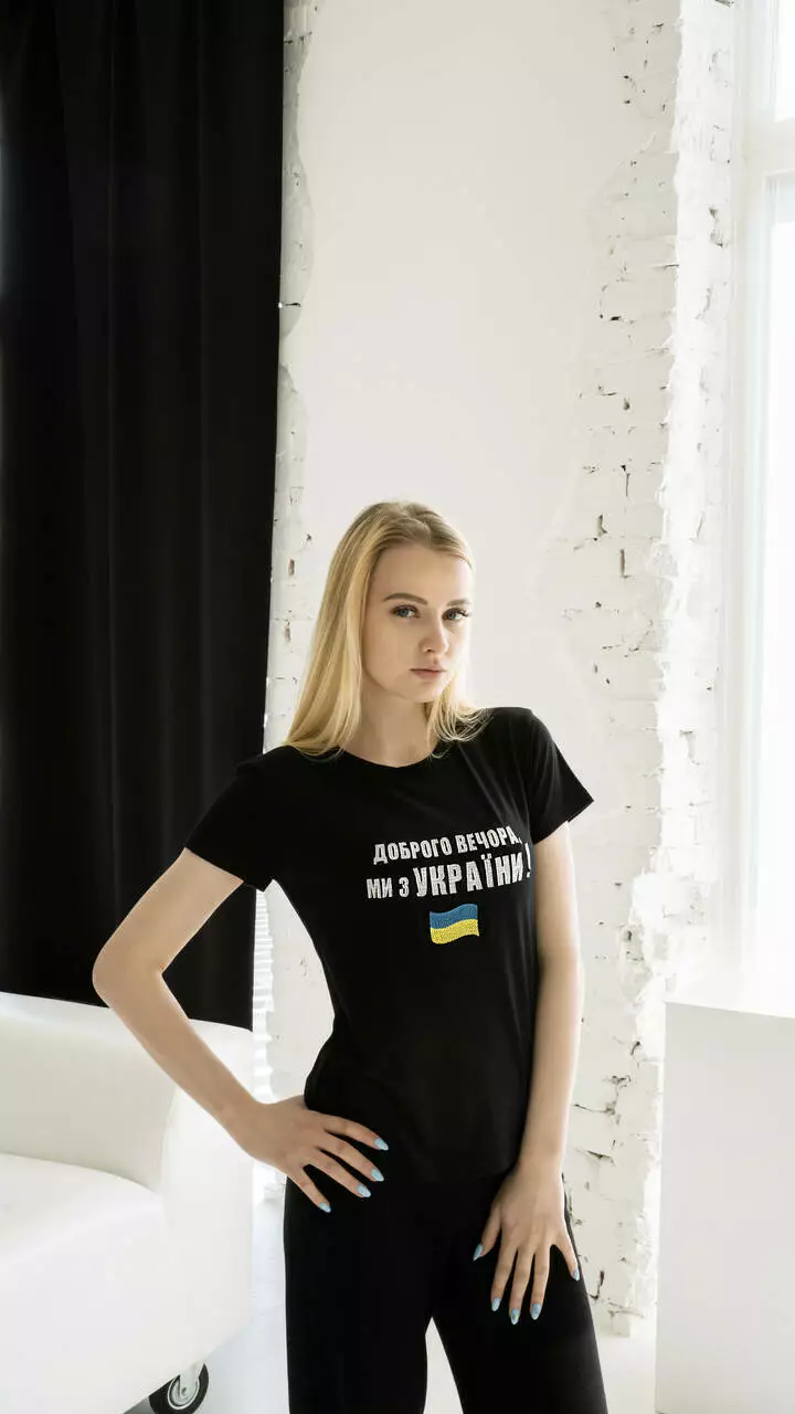 Патріотична жіноча футболка "Доброго вечора, ми з України", на