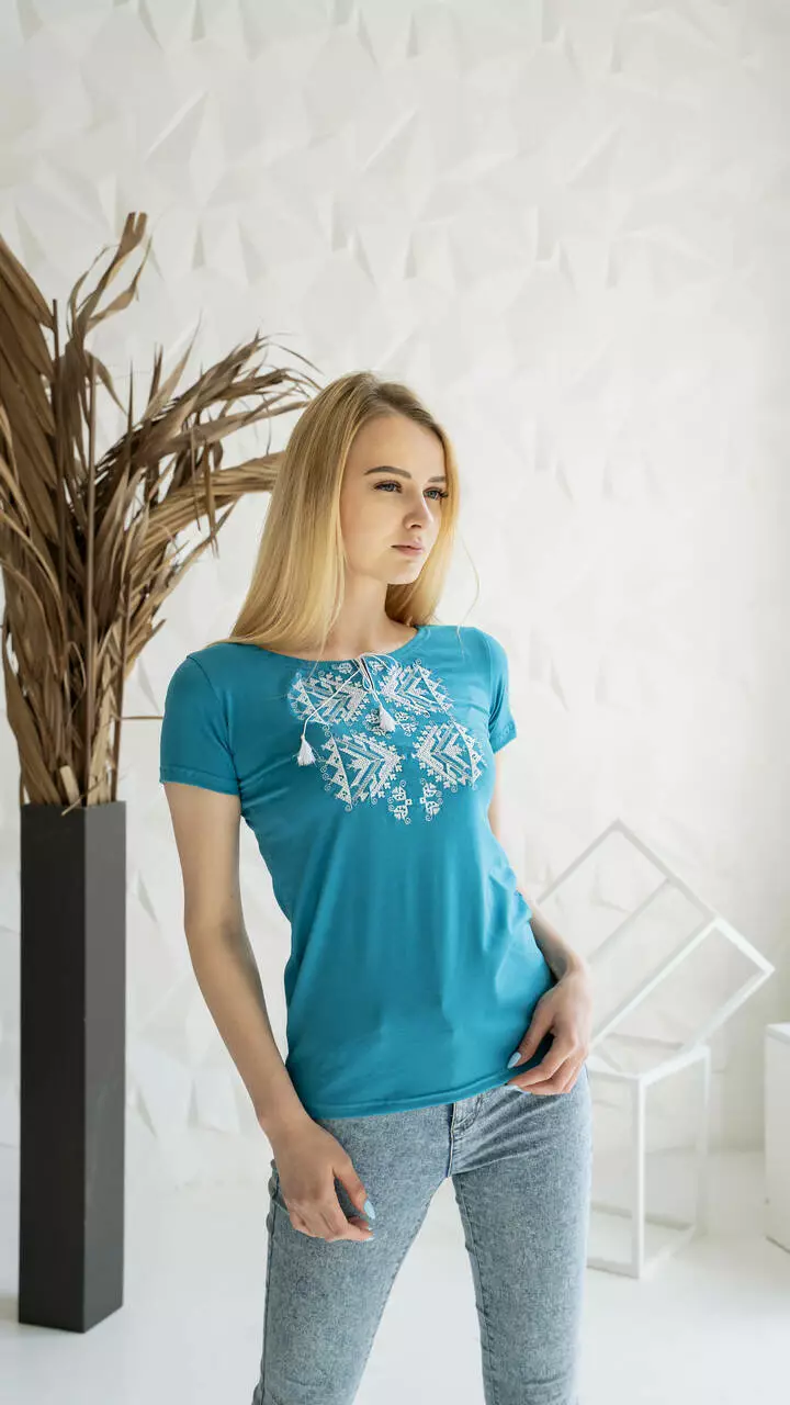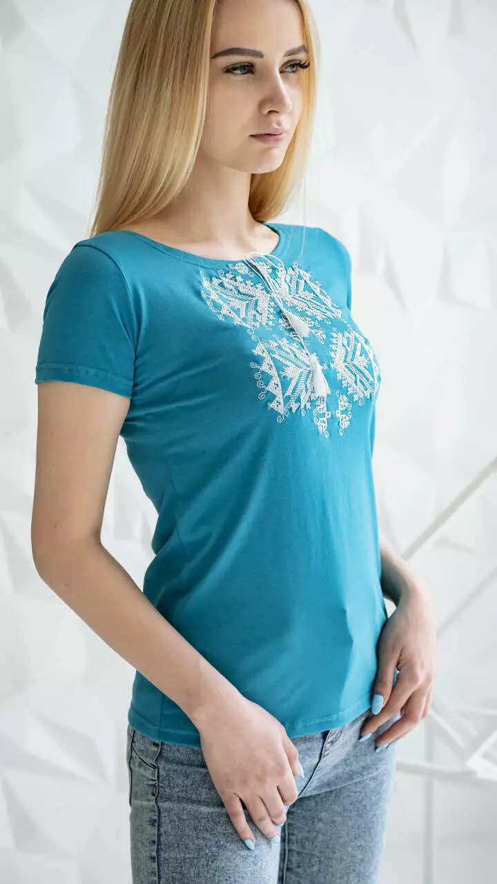 Прекрасна вишита жіноча футболка вишита білими нитками А-39