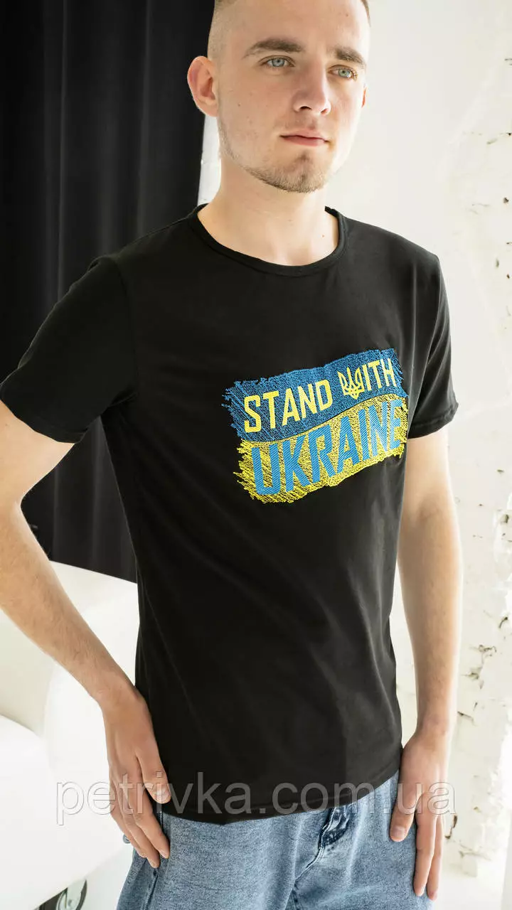 Прекрасная Патриотическая мужская футболка Украина на черной ткани М-07