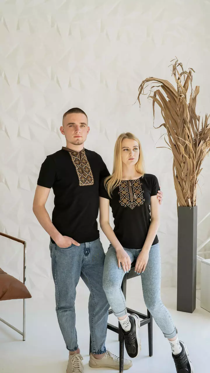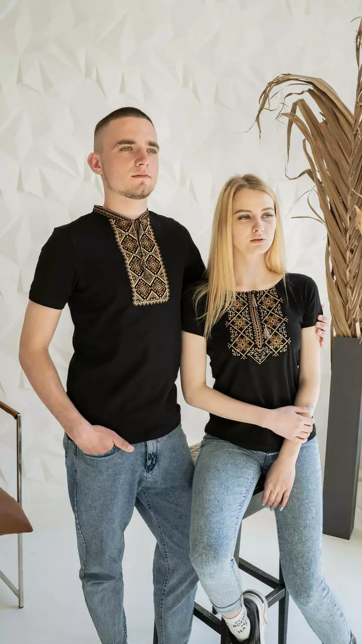 Прекрасний парний комплект з вишитими коричнево-бежевими нитками