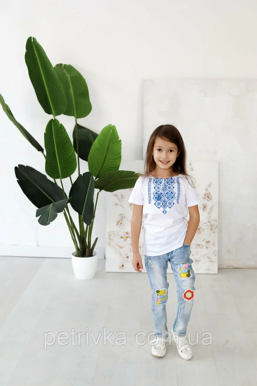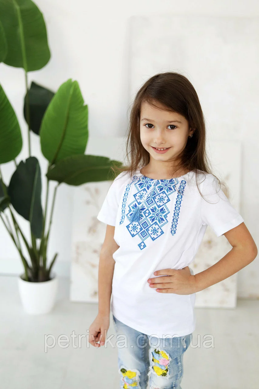 Модель біла футболка з короткими рукавами. У цій футболці, Ваша дитина буде виглядати завжди святково.