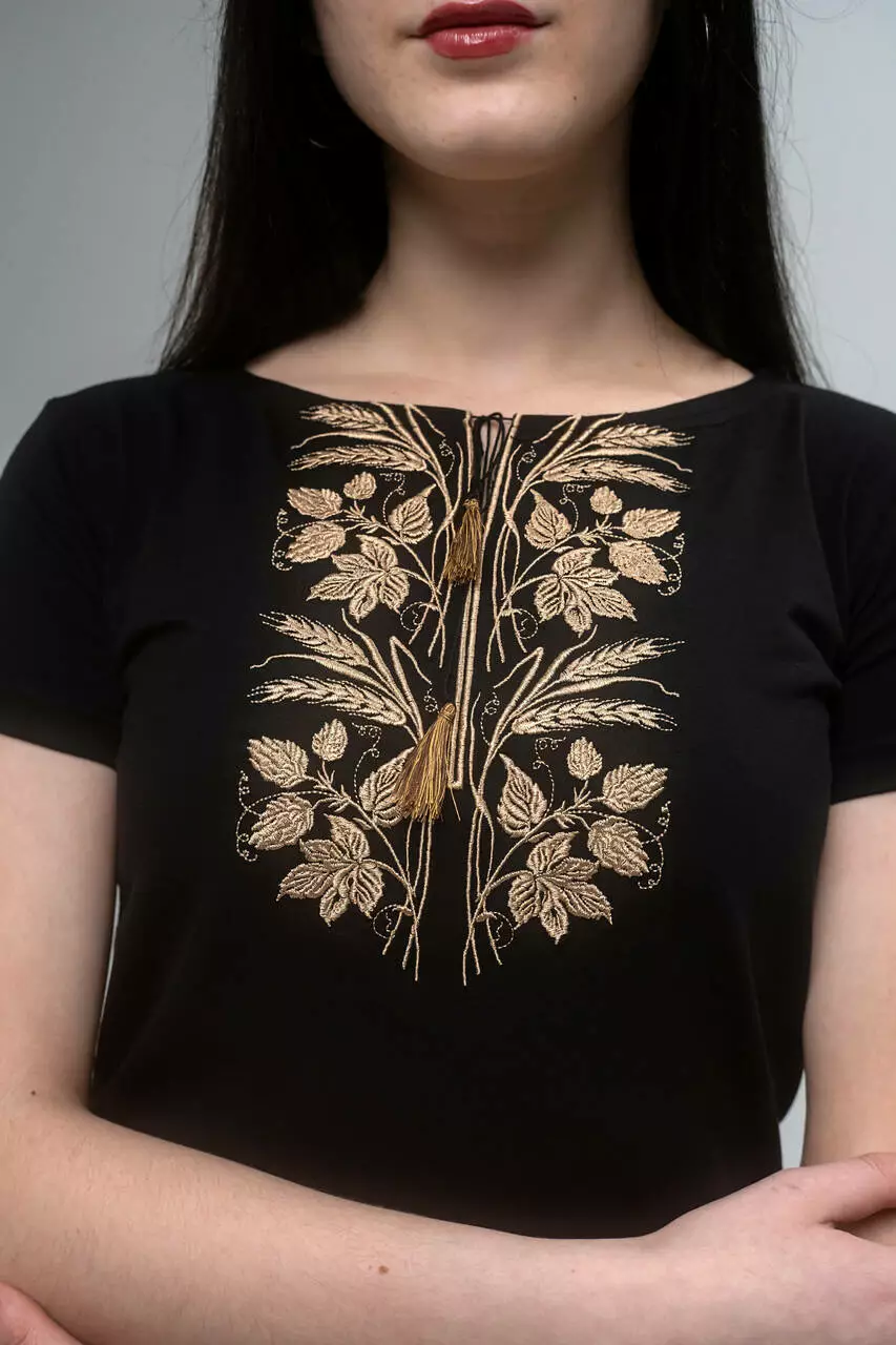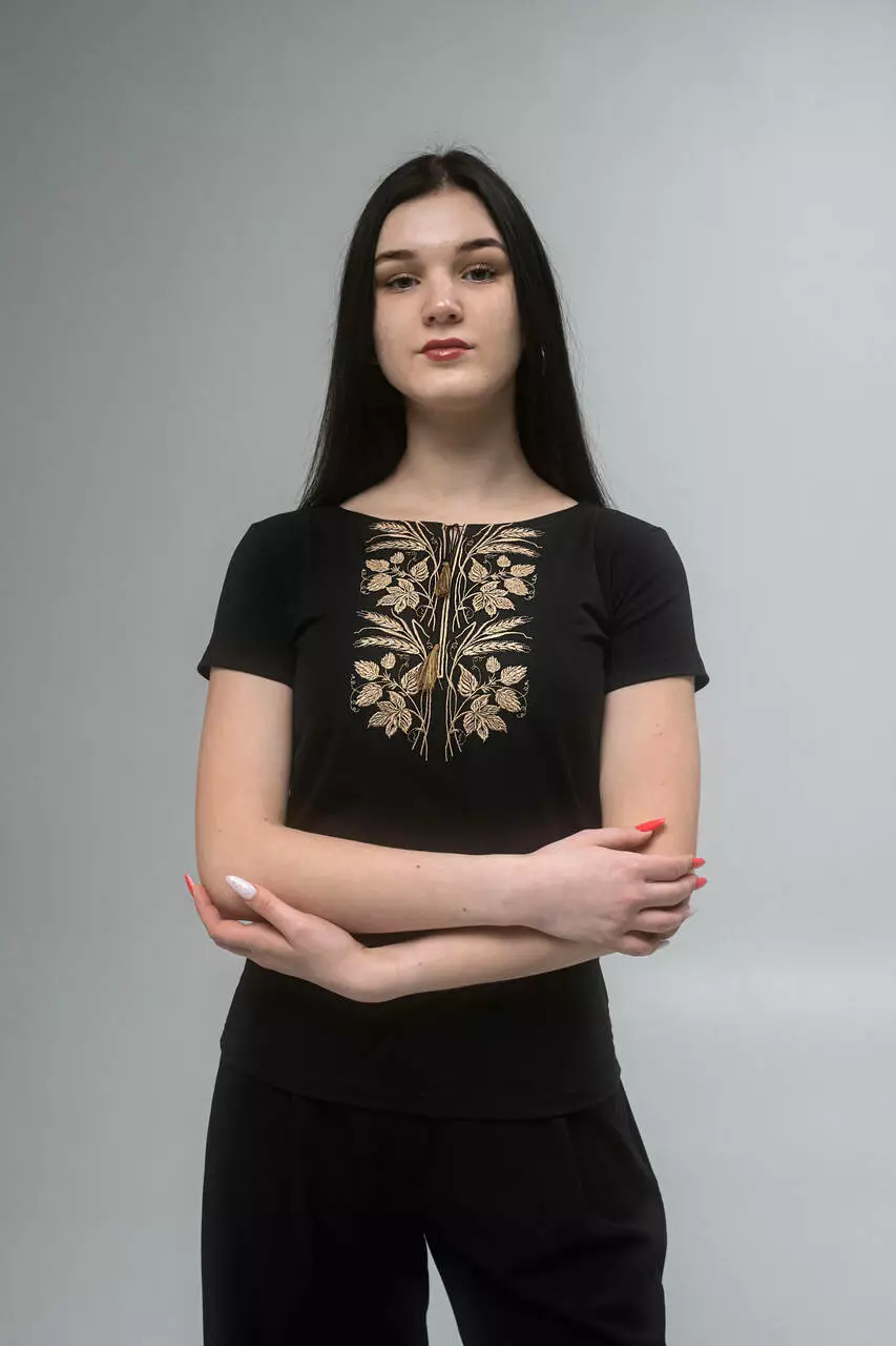 Вишита жіноча футболка з вишитими колосками