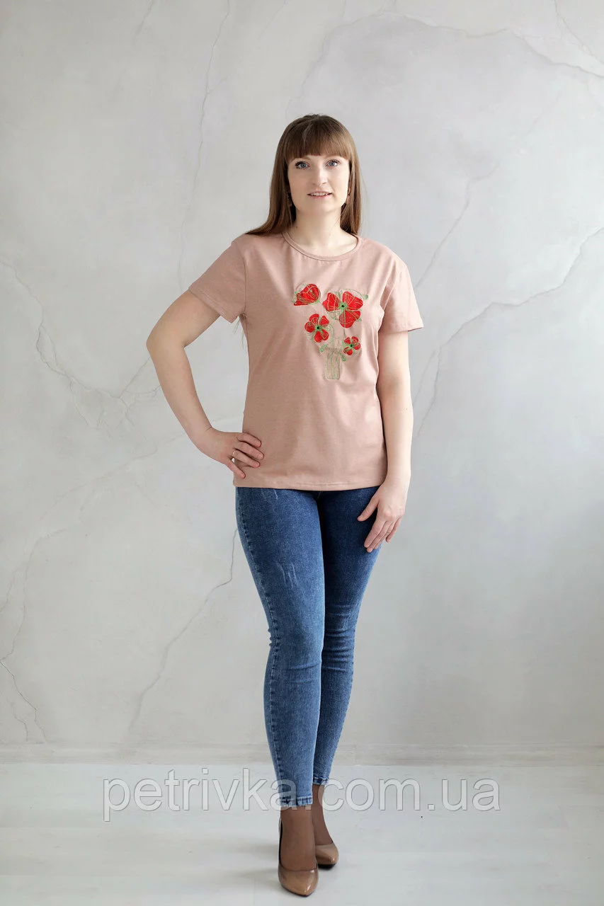 Жіноча футболка в стилі CASUAL, з вишитим принтом Квіти.